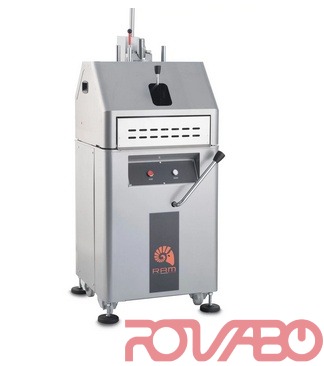 Machine suitable to divide and round dough for bakeries, pastry workshop and pizzerias. Steel stove painted structure, stainless steel AISI304 knives. Dividing disc in processed food aluminum casting. The rounding motor starts just when the cut is made (lever down) by means of a safety micro switch. Equipped with three PETG food material plates. On castors, with stopping feet and key for their adjustment. Working cycle: manual pressing, cutting and rounding by means of levers.