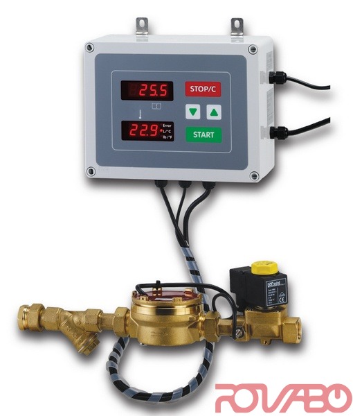 The model offers only the dosing function, without the temperature control. It allows to control the quantity with a precision of 1%, ensuring constantly repeatability and precision. An internal high precision probe allows to read the water temperature. Water delivery at 1 bar and 20 ºC is 25 l/min. Water delivery at 5 bar and 20 ºC is 55 l/min.