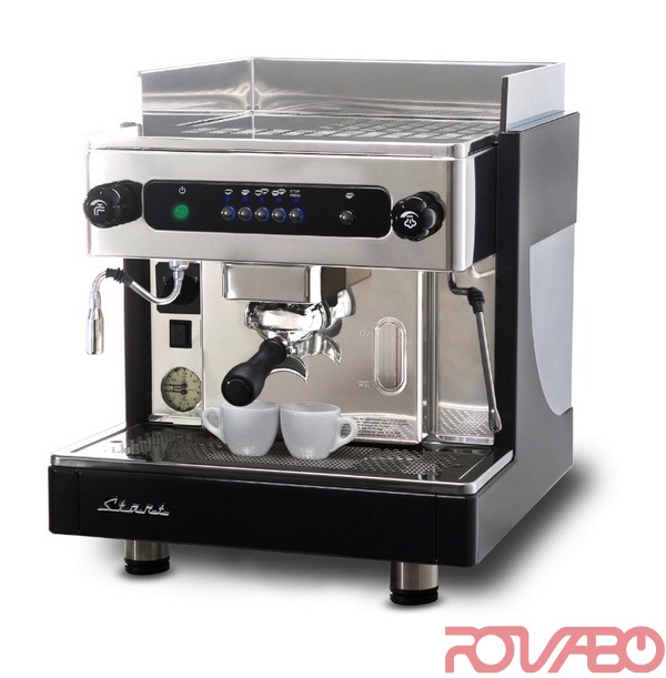 Electronic version with volumetric dosing of the coffee doses, directly programmable from the keyboard. Manual switch for semi-automatic dispensing. Standard features: body with panels in stainless steel and in painted steel; boiler water level light indicator; double scale manometre for displaying the boiler and pump pressure; automatic water refill (A.W.R.); 4 dose coffee keyboard; 1 steam wand, 1 hot water faucet; built-in motor pump. Optional features: milk frothing wand, cappuccino maker, electric cup warmer (2-3 Gr.), Led lighting of the working surface, raised groups. Please specify the voltage needed in the order!