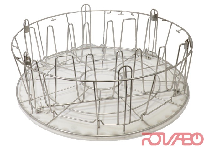 Basket with foldable spikes, with loading possibilities for Gastronorm containers, pots and pans, as well as grids, baking sheets and cutting boards without adding extra accessories. Capacity: 6 GN 1/1 65 mm or 3 GN 1/1 up to 200 mm + 3 GN 1/1 up to 65 mm. 2 GN 2/1 up to 100 mm, or 12 GN 1/4 1/6 1/9.