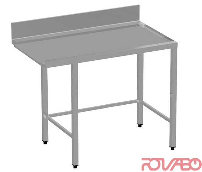 Top plate of the dishwasher table with deepened surface is made from wet polished (scotch brite) stainless steel AISI 304 sheet. All tables are with welding frame. Legs of the table are made from 40x40 mm tube of stainless steel. Possible left (K) or right (D) connections for all types of dishwashers - pls specify when ordering. Hard plastic feet of legs is adjustable 50 mm (+25/-25) height.