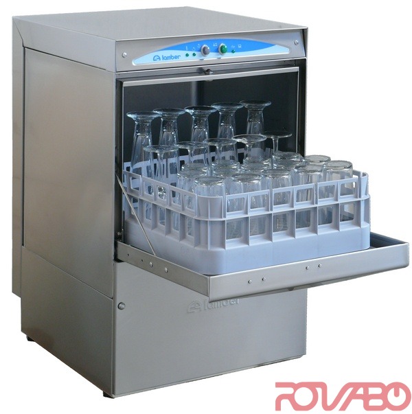 Stainless steel construction 18/10 AISI 304. Tank with slanting bottom. Stainless steel rotating lower washing, lower and upper rinsing arms. Automatic tank loading. Door opening safety device. High temperature rinsing. Rinse aid dispenser. Extractible control panel. Baskets per hour №30. Cycle period 120 sec. Basket dimensions 400x400 mm. Work height - 315 mm. Glass clearance 300 mm. Pump delivery 160 l./min. Tank capacity 8 lt. Boiler capacity 3 lt. Cycle/ hour water consumption – 2/ 60 l. Water connection: 12-20ºC. Rinsing water temperature - 80-90ºC. Water pressure 2-4 bar, hardness - 5-10ºF. Available accessories: incorporated detergent pump, tank drain pump with filter, stainless steel base, round basket stainless steel support, Integral tank filter. Issue: 2 baskets for glasses - 1 insert for saucers - 1 cutlery container.