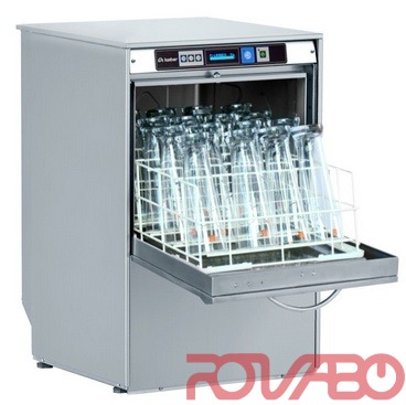 Stainless steel construction 18/10 AISI 304. Washing capacity: 900 pieces/H, 60/30/20 baskets/H. Wash cycle: 60/120/180 sec. Basket size: 40x40 cm. Work height: 315 mm. Clearance: 300 mm. Tank /boiler capacity: 8/ 3 l. Rinse-aid dispenser. Water connection: 12:20°C. Pump delivery: 160 l/min. Cycle/hour water consumption: 2/60 l. Water pressure/hardness: 2:4 bar/5:10°F. Rinsing water temperature: 80:90°C. Noise: <60 dB(A). Extractable soft-touch electronic control panel with interactive graphic display. Wash and rinse temperature electronic display. Complete programming of all the washing parameters. Cycle counter. Service maintenance function. Constante rinse boiler system (RCB). Drawn tank with self-cleaning bottom. Self washing tank. Insulated double skin. Integral tank filter. Stainless steel washing and rinsing arms. Rotating lower washing. Rotating upper and lower rinsing. Automatic tank loading. Door opening safety device. Economy thermostat. Thermocontrol (device which guarantees the selected temperature for every rinsing cycle even in case of non-stop work). Issue: 2 baskets for glasses, 1 basket in whitel RILSAN steel ø80 H260-300 mm, 1 insert for saucers, 1 cutlery container. Options: timed dispenser for liquid detergent, tank drain unit with filter, stainless steel base with lower open place h.575 mm, booster pump, round basket stainless steel support.