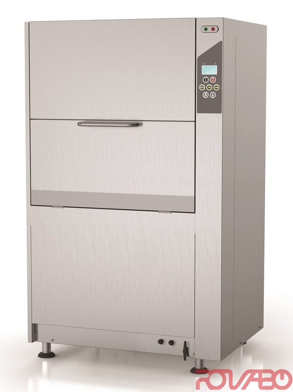 Smart is an excellent choice for kitchens where low ceilings are a challenge and space is needed for other, more income-generating operations. Ideal for kitchens with mainly Gastronorm containers but easily adapted to fit GN 2/1 trays, grids, baking trays, chopping boards, GN 1/1 lids, ladles, large pots, saucepans and skillets by adding a few accessories. Suitable for kitchens preparing between 400 and 1500 meals per day. Wash pump motor 2.2 kW; wash tank element - 9 kW (14 kW cold water), rinse tank element - 9 kW (14 kW cold water) - do not operate simultaneously. Enclosure rating IPX5. Wash tank volume: 108 l. Rinse water volume: 4 l (ECO programme), 6 l (short/ normal programme). Wash programmes with/without granules: 2 min / 2 min (ECO programme), 3 min / 2 min 30 sec (short programme) and 5 min / 4 min 30 sec (normal programme) - 30 sec longer with steam reduction. Wash water temperature 65ºC, rinse water temperature 85ºC, cold water - 1-6 bar (with optional steam reduction 3–6 bar), drain capacity requirement - 50 l/min. Max. / normal capacity per hour: 180 / 132 GN 1/1 or similar in other pots. Capacity per programme: 6 GN1/1 65 mm depth or 3 GN1/1 up to 200 mm depth and 3 GN1/1 up to 65 mm depth, or similar in other pots. Including USB port for HACCP Log (for up to 200 wash cycles through the built-in HACCP Log feature), GD Memo™ (a built-in counting and reminder system that keeps track of wash cycles and remembers when it's time to change PowerGranules or the water or when to book an appointment for maintenance - so that you won't have to) and type AB air gap according to EN 1717. Standard equipment: 1 pc 29505 Pro wash basket NEW (loading possibilities for Gastronorm containers, pots and pans, as well as grids, baking sheets and cutting boards without adding extra accessories; сapacity: 6 GN 1/1 65 mm or 3 GN 1/1 up to 200 mm + 3 GN 1/1 up to 65 mm, 2 GN 2/1 up to 100 mm, or 12 GN 1/4 1/6 1/9), 1 pc 29495 Utensil basket (items up to h500 mm, 6 pcs fits in a wash basket; to be placed inside the Pro wash basket (29505), 1 pc 21838 Scraper, 1 pc Granule collector 8 litres, 8 litres PowerGranules® (in the machine).
