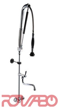 - One hole pre-rinse unit water-stop system with swinging "S" spout in the middle of tube and round handle