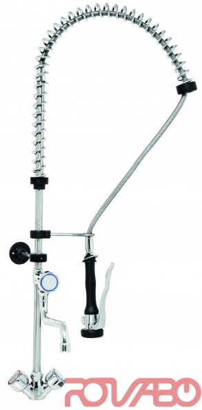 - One hole pre-rinse unit with spout in the middle of the tube, round handle and premium shower hand, 17 l/min