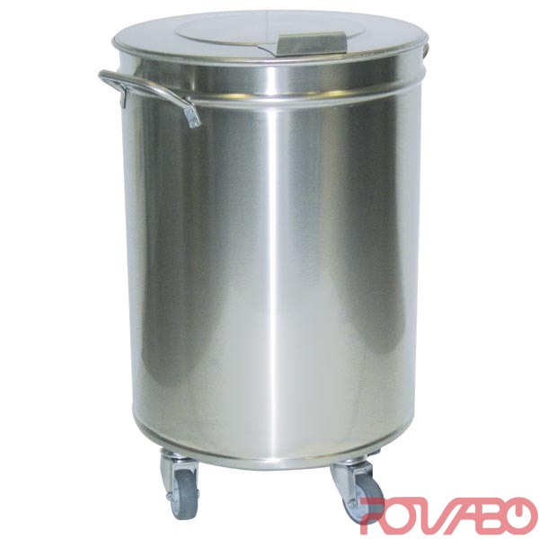 Pagaminta iš nerūdijančio plieno. Dvi rankenėlėmis iš šonų. Ant besisukančių ratukų. Dangtis atidaromas rankiniu būdu.