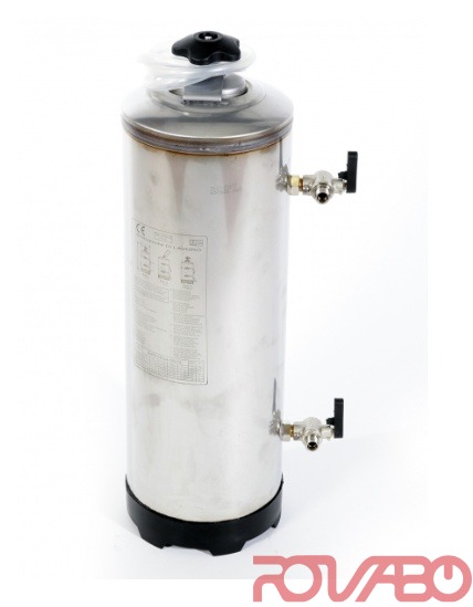 Material: stainless steel AISI 304. Incl. ion-exchange resin and copper nickel fittings, tap with male thread 3/8" - female thread 3/8" is available upon request.