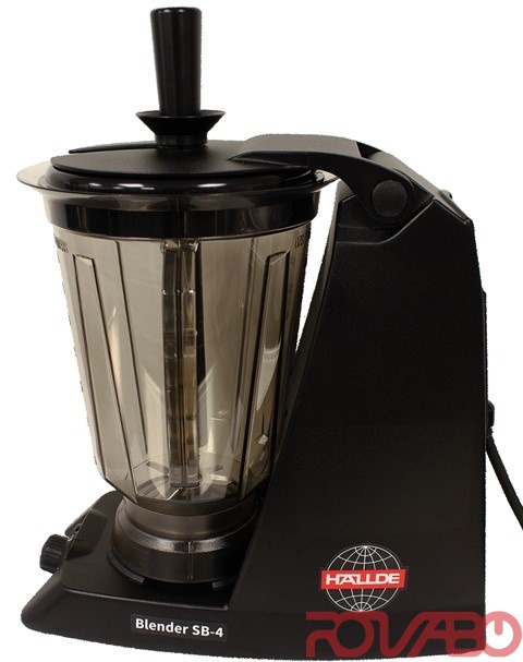 Blender SB-4 is designed to create a smooth texture of soups, dressings, marinades, desserts and drinks etc. The solid Pom-C pestle shortens the processing time and enables the ingredients to be pushed towards the knife-unit that chops, mashes and mixes. The hinged lid holder with a built-in safety switch. The impact and heat resistance sturdy 4-litre transparent jug and polypropylene lid, pestle and oil dosing bowl (for slower feeding) are dishwasher safe. The jug, with graduations, and 100 ml dosing feeder made of exclusive Trogamid®. Aluminium alloy housing. Two firm handles, a drop-free edge for steady and smooth pouring. The hole in the lid enables filling of liquid during preparation. Knife unit: blades of highest quality knife steel, maintenance-free stainless steel shaft, fully encased and maintenance-free stainless steel ball bearings; steel reinforced acetal drive coupling wheels on the jug and on the machine base. The machine motor is placed behind the jug with lid connected to motor base. Safety system includes machine to stop when the lid is removed. Thermal motor protection with automatic reset. Electronic speed control for soft start and constant speed regardless of the load. Transmission: self-tensioned maintenance free PolyV-belt. Degree of protection: IP34. Sound level LpA (EN31201): < 84 dB(A). Variable speed (700 to 18 000 rpm) and Pulse function. Processing from 2 dl up to 4 litres.
