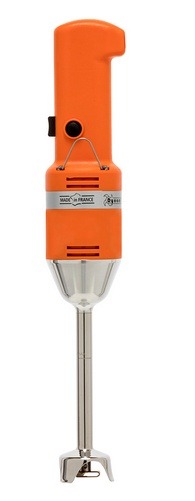 A new 2025 small, quick, efficient and sturdy appliance. It allows to mix and emulsify sauces, to grind and blend small quantities of excellent velouté soups, but also crepes paste, sauces, mayonnaises, finely pulverised vegetable purées, porridges, fruit creams, compotes, modified textures, etc. and made for chocolate makers. It is also for all the recipes with a certain temperature needed (like the waffle dough f.e.). Variable speed, 2-blade emulsifying knife is ideal for making ganaches and mirror icing. Thanks to its ergonomic design, it is comfortable and intuitive to hold, even during prolonged use. Non detachable mixer tool: ensures durability of the mixer. Double insulation. Stainless steel mixer tube for a perfect hygiene. Blade easy to remove. One-click speed control; LED display for increased precision. Shaft length: 160 mm. Diameter: 72 mm. Speed: 11,500 tr/min or 3,000 to 11,500 rpm. Never clean this machine with water jet spray or in the dishwasher. Availability in the 2nd quarter of 2025 (the previous MD95 model remains available while supplies last).