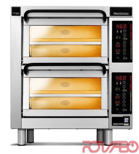 Hearth of natural material with crisping function. Digital display with electronic controls. Turbo-start function. Dual halogen lighting. Timer with manual shut-off alarm. Auto timer with alarm. See-through oven door with special heat-reflecting glass. 2 chambers 410х410х195 mm each. 4 stones in total.