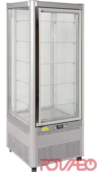 5 Wire Shelves 503x460 mm. Humidity: 40%. Manual defrosting, evaporation. Refrigerant R290. Lock: Optional. Led light. Static refrigeration. Standard colours: Silver, Bronze painted