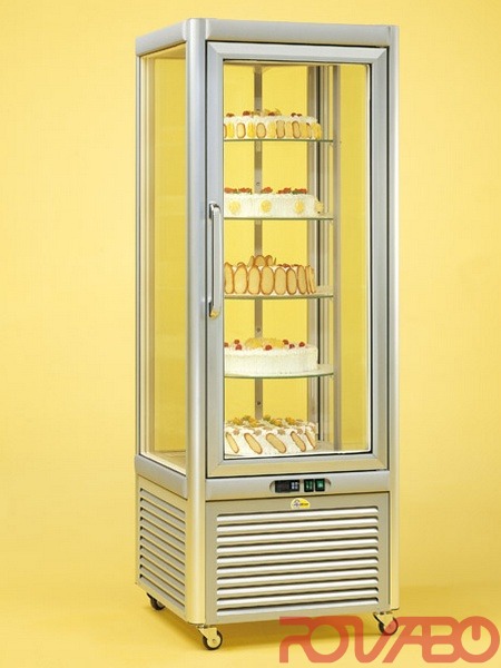 Shelves: n°5 Ø465 mm. Humidity: 75%. Automatic defrosting by thermostatic pause, evaporation aut. Refrigerant R290. Lock: Optional. Led light. Ventilated refrigeration. Standard colours: argento, verniciato bronzo, extra: ral.