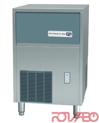 Type of produced ice: Frozen dice. Truncated cone format, slightly indented facets 17 gram (ambient temp. +21°C - water temp. +15°C). Crystalline and compact. Cools, but the flavour stays the same. Suitable for any shape of glass, a cool boost for drinks in hotels, restaurants, bars and discos. 110-150 mm adjustable foot. Water cooling system. Production 38 kg. Cleaning System. Refrigerant: R290.