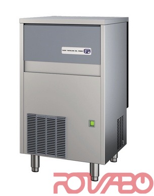 Type of produced ice: Frozen touch, 20 g. Hollow thimble format. Suitable to any type of water, even the hardest. Designed for maximum cooling surface. Perfect for drinks of all kinds, in bars, restaurants, discos and hotels. Adjustable foot 110-150 mm. Production 46 kg (ambient temp. +21°C - water temp. +15°C). Water cooling system. Refrigerant: R290.