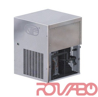 Type of produced ice: Frozen stone (pebbles ca. 13x18x13 mm). Characteristic of this kind of ice is compactness that grants a long lasting preservation for fast food, discos, hotels, bars, fish markets, supermarkets, restaurants, medical organisations, spa and industry, and satisfies any exigency in cocktails preparation. Water cooling system. Production 245 kg (ambient temp. +21°C - water temp. +15°C). Usable Bins: Bin PE530 - Bin T250 - Bin T420 RB 140 - RB 280 (single or double application of the ice maker). R290.