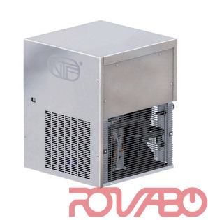 Type of produced ice: Frozen stone (pebbles ca. 8x16x7 mm). Characteristic of this kind of ice is compactness that grants a long lasting preservation for fast food, discos, hotels, bars, fish markets, supermarkets, restaurants, medical organisations, spa and industry, and satisfies any exigency in cocktails preparation. Air cooling system. Production 130 kg (ambient temp. +21°C - water temp. +15°C). Adjustable foot 110-150 mm. Usable Bins: Bin PE530 - Bin T250 - Bin T420 - RB 140 (single or double application of the ice maker). R290.