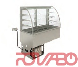 - Refrigerated and ventilated closed display case on refrigerated tank - 3 shelves, curved, 4 GN1/1, -1/+5ºС