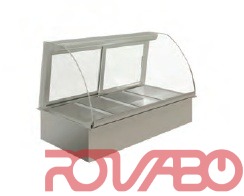 Stainless steel top AISI 304, th. 12/10. Tank 1280x510x100 mm for GN containers with a height of 100 mm. Dividers kit included. Finned heating elements with cross-flow fans for the correct temperature distribution inside the display case. Humidification produced through an evaporation pan in the bottom of the tank with automatic water level control. Halogen lamps. Core temperature probe. Temperature and humidity control through a digital programmable thermostat. Diameter water inlet/ drain pipe 3/4 / 1/2’’.