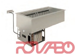 Stainless steel top AISI 304, th. 12/10. Refrigerated laminar airflow. Stainless steel height-adjustable blind bottoms (useful height 30-150 mm). Evaporator with anti-corrosion coating, which can be lifted to easily clean the well. Condensed water drain on bottom (evaporation kit on request). Insulation by high density expanded polyurethane without C.F.C. and H.C.F.C. With condensing unit or pre-set for remote refrigeration. Digital control system for temperature adjustment and defrosting. 1630x510x30/150 mm well. R452A refrigerant gas. Cooling power at -10°C - 1.65 kW. Inlet/ outlet gas pipe - ø10/ 12 mm.