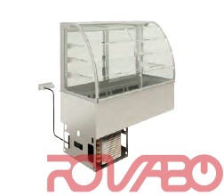 - Refrigerated and ventilated display case on refrigerated tank,flaps - 3 shelves, curved, 3 GN1/1, -1/+5ºС