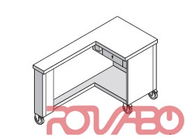 Top H=50 mm made of stainless steel AISI 304, th. 12/10 with rounded edges. Support for cash register, cash drawer and seat space. Central cash unit equipped only with the drawer; right and left cash units equipped with drawer and socket 230V.