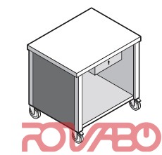 Top H=50 mm made of stainless steel AISI 304, th. 12/10 with rounded edges. Support for cash register, cash drawer and seat space. Central cash unit equipped only with the drawer; right and left cash units equipped with drawer and socket 230V.