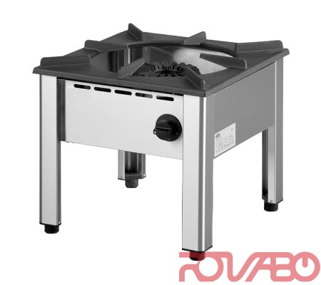 Gas pot cooker with one burner (LPG), one atmospheric burner. Construction: unified body; top panel as one piece large cast iron potholder for heavy duty use; front and side panels made of stainless steel AISI 430 with hairline surface pattern (0.8 mm); height adjustable levelling legs; type of installation: free standing; unit made of high-grade stainless steel. Manual ignition. Equipped with pilot burner, safety thermo-couple, gas valve and gas control knob. Compact design. Constructed to use as a portable unit, as well as a wok cooker. Designed for durability to cater medium volume of boiling and simmering, this stock pot cooker is the perfect solution for every Asian kitchen. Optional accessories: cast iron Wok ring - suitable for woks with a Ø22” (559 mm) to Ø 24” (609 mm). Ø500 mm burner. Gas connection DN 20 (3/4”).