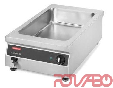 Casing completely made of chrome nickel steel 18/10. Deep-drawn basin. Heating element under the basin bottom. Device with on/off switch and control light. Incl. outlet valve.Thermostatically adjustable from 30 – 95 °C.