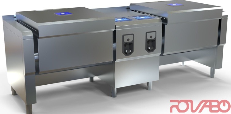FlexiChef is a multifunctional fully flexible tilting pan in 5 sizes for high speed cooking. FlexiChef makes everything possible: cooking, Sous Vide cooking, frying, deep frying or pressure cooking. The only horizontal cooking appliance equipped with an automatic cleaning system SpaceClean (in 2 min only! compared to conventional MKN equipment). Descaling (with SpaceClean) – extended application of FlexiChef. Automatic cooking (AutoChef) in 10 cooking categories, from meat to perfection (regeneration); manual cooking with 9 cooking programmes. ChefsHelp - Step by step instructions for perfect results. Thanks to ReadyXpress - high speed cooking it is 3 times faster than conventional cooking and twice as fast as conventional pressure cooking equipment! Turbo PowerBlock - pan bottoms with intelligent heating system (energy saving and efficient). FlexiZone: a complete dish in only 1 skillet pan divided in up to 3 zones with individually controlled temperature and time - this saves space, time and energy. MaxPower and FlexPower variants available: 22,4 + 22,4 & 17,2 + 17,2 kW. Automatic filling, automatic emptying, automatic portioning (patent). Front panel with USB 2.0 port (Transfer of HACCP data and cooking programmes). Integrated Ethernet interface. Electronic multipoint core temperature probe. Appliance fully prepared for easy connection to electricity and water/waste water (provided by customer). Integrated siphon. Motorised drain valve flush mounted in the bottom of the skillet pan. Electric motor controlled lid. Size 2+2 (75+75 L). Simple operation with MagicPilot OS - 10 inch display, as your smartphone. Favourites & Quick Start - immediate access to your favourite functions from start screen. All pan sizes can be indivually combined with the control panel in the middle (FlexiChef Team). Pan dimensions: 723x543x225 + 723x543x225 mm; Oil capacity max.: 35 + 35 L. Cold/hot (max. 60°C) water (drinking water): Flow rate min. 13 l/min, pressure 2-6 bar, Carbonate hardness: < 4,5 mmol/l, dimensions 3/4" AG, DN 20. Drain water connection: DN 50, flow rate 50 l/min (fixed connection) and 70 l/min (floor drain). Optional connection to MKN OPTIMA 850 possible; additional space not required. Options: connection to Connected Kitchen; Socket 230 V; integrated hand shower; plinth base cover; ServiceApp; fire detection interface; external signal interface; energy optimization system, potential free contact; emergency stop switch; external sous vide core temperature sensor.