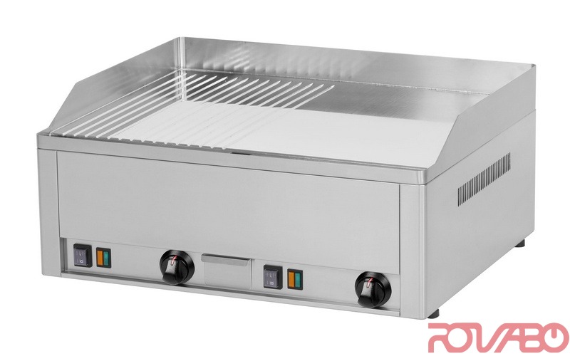 - Electric griddle plate tabletop 1/2 ribbed and 1/2 smooth chromed, 6 kW