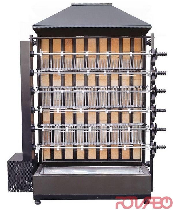 Wood-fired roasters manufactured with strong, top quality materials to ensure efficient use for many years. Motor-reducer with chain-drive and steel sprockets. Adjustable spits to regulate the distance from fire. Special refractories for insulation. Reinforced brackets, adjustable legs, etc.
