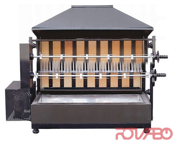 Wood-fired roasters manufactured with strong, top quality materials to ensure efficient use for many years. Motor-reducer with chain-drive and steel sprockets. Adjustable spits to regulate the distance from fire. Special refractories for insulation. Reinforced brackets, adjustable legs, etc.