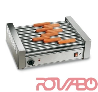 The roller-type sausage heater is ideal in fast-food retailers, bars and pubs. It allows a fast and even cooking of sausages which will get the taste and browning of grilled meat without having to turn them over manually. Body from stainless steel. Asynchronous motor with gear-box reducer. S/S rolls with shock-proof heating elements. Rollers: ø25 mm; n. 9; width 460 mm. Optional: teflon-coated rolls.