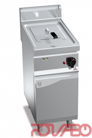 Front panels made of AISI 304 STAINLESS STEEL. Pressed and rounded tank equipped with long lasting special rotating resistances made of Incoloy stainless steel; they can reach the operational temperature in very short time increasing oil savings to 60%. The frying system maintains the organoleptic characteristics of the oil which allows for a healthier production and furthermore, limits the required oil changes giving further savings. The resistance rotation makes cleaning operations easier. Adjustable thermostat up to 190° C with control facility, safety thermostat and manual restart. Average frying time of 4 minutes. Pre-heating time of 4-5 minutes (from 20 to 190°C). Maximum output 25 kg/h. Adjustable feet.