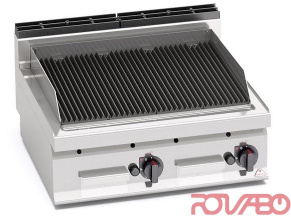 304 AISI stainless steel worktop and front panels. 11.865 kcal/h. Regulation of power supply by a continuous operation tap. Pilot flame and thermocouple safety valve. Piezoelectric ignition with silicone protection. Stainless steel brazier. Large cooking surface with easy removable cast iron grid. The particular design allows one to cook fish, meat and vegetables, preventing fat from burning. Two zones with separate controls for an independent and perfect regulation of temperature. All components can be dismantled easily to carry out regular cleaning and maintenance operations. Very long steel watertight drawer for ash and fat collection. Lava stone supplied.