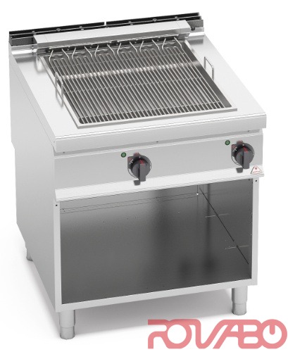 Worktop and front panels made of AISI 304 stainless steel, 20/10 thickness and Scotch Brite finishing. Two independent cooking areas controlled by two power regulators, max temperature 400°C. Signalization lights. High power armored heating elements for cooking food in direct contact. Cleaning program using pyrolysis technology that, in a few minutes, causes the thermal decomposition of cooking residuals. Rotating resistances and easily removable components for facilitating standard maintenance and cleaning operations. Removable stainless steel tray for collecting cooking fat and containing water. Incl. grooved scraper for electric grill. Option: 2 doors with handle of 20/10 thickness.