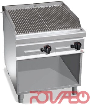 15477 ккал/ч. Материалы : полностью из нержавеющей стали AISI 304. Трубчатые горелки из нержавеющей стали с двойным пламенем. Главные особенности: гриль, с широкой рабочей поверхностью, подходит для приготовления различных блюд (мясо, рыба, овощи) без сгорания жира. Регулировка подаваемого питания регулятором непрерывного действия. Запальная горелка и предохранительный клапан, оснащённый термопарой. Пьезоэлектрический поджиг с резиновой защитой. Закруглённый гриль с крупными желобами для сбора жира. Независимое управление - независимое идеальное терморегулирование. Все детали легко снимаются для выполнения техобслуживания и очистки. Длинный герметичный стальной контейнер для сбора пепла и жира. Позволяют воссоздать традиционный метод жарки на гриле вместе с прецизионным терморегулированием, упрощённой очисткой при соблюдении всех правил техники безопасности. Регулируемые ножки в моделях на шкафчике.