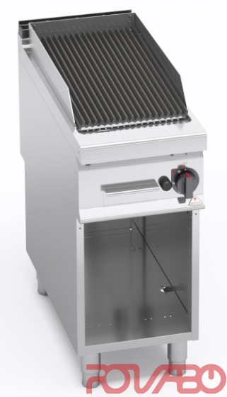7738 ккал/ч. Материалы: полностью из нержавеющей стали AISI 304. Трубчатые горелки из нержавеющей стали с двойным пламенем. Главные особенности: гриль, с широкой рабочей поверхностью, подходит для приготовления различных блюд (мясо, рыба, овощи) без сгорания жира. Регулировка подаваемого питания регулятором непрерывного действия. Запальная горелка и предохранительный клапан, оснащённый термопарой. Пьезоэлектрический поджиг с резиновой защитой. Закруглённый гриль с крупными желобами для сбора жира. Независимое управление - независимое идеальное терморегулирование. Все детали легко снимаются для выполнения техобслуживания и очистки. Длинный герметичный стальной контейнер для сбора пепла и жира. Позволяют воссоздать традиционный метод жарки на гриле вместе с прецизионным терморегулированием, упрощённой очисткой при соблюдении всех правил техники безопасности. Регулируемые ножки в моделях на шкафчике.