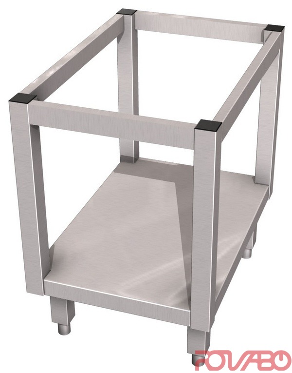 MKN system stands are standardised for single appliances and combinations of the CounterSL line. Housing made completely of chrome nickel steel (1.4301) / (AISI 304). Base frame open on all sides with bottom, without table surface. Feet height adjustable by screws in studs (optional height of 200 mm). Optional accessories: appliance foot, 200 mm high, pluggable +/– 15 mm height adjustable (4 feet).