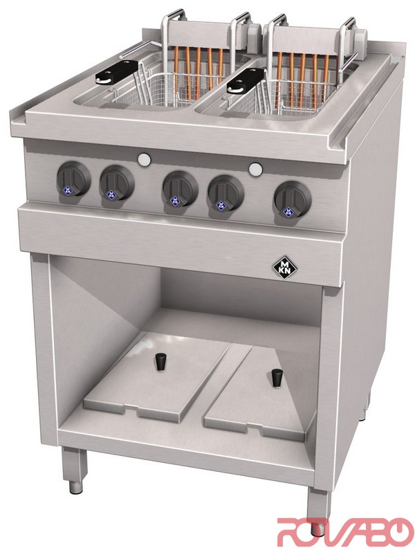 Pressed steel frying basin 180x400x235 mm is seamlessly welded into the top plate with large froth over tray. Chrome nickel steel tubular heating elements with a low surface load (3.7 W/cm²) for longer lasting fat, basin with deeper, cool zone. Heating elements can be raised completely out of the frying basin, with holding bracket and automatic cut off, incl. for easy cleaning. Thermostatic or electronic temperature regulation. Safety temperature thermostat for reliable overheating protection. Main switch, thermostat, safety temperature thermostat, control lamp, tubular heating elements, contactor, end switch, mains connection, IPX 5. Basket lift with timer. Safe oil drainage from the bottom via slide valve. Equipped for connection to a power optimization system with potential free contact as standard. Oil melting cycle is available on request. Accessories: 2 Lids, 2 oil clarifying trays, 2 baskets "L".