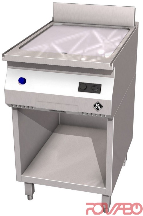 Plate lowered and seamlessly welded into the top plate, with easy to clean corner radii. Thermostatic temperature regulation. Frying plate made of heat resistant special steel. Frying surface 420x545 mm. DN 15(½") gas connection required. Atmospheric burner, ignition burner, thermoelectric safeguard, thermostat, piezoelectric ignition. Natural 20; 25 mbar or liquid gas 30; 37; 50 mbar. Optional accessories: 1 splash guard, 1 griddle plate scraper for smooth and ribbed griddle plates.