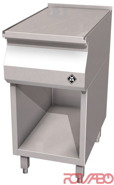 Housing made completely of chrome nickel steel (1.4301) / (AISI 304). U-shaped connection channel, flush with top plate; tightly fitted to the substructure, for maximum hygiene. Directed drainage of fluids via a drip outlet in the top plate at the front. Optional accessories: appliance foot, 150 mm high, pluggable +/– 15 mm height adjustable (4 feet). *GN container is not included.