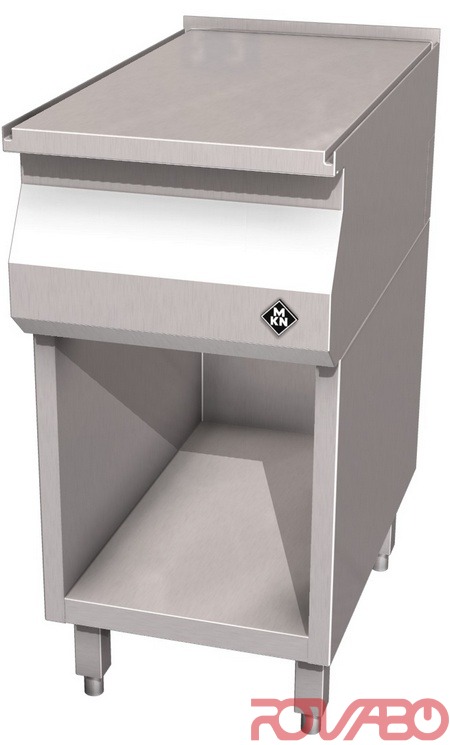 Housing made completely of chrome nickel steel (1.4301) / (AISI 304). U-shaped connection channel, flush with top plate; tightly fitted to the substructure, for maximum hygiene. Directed drainage of fluids via a drip outlet in the top plate at the front. Optional accessories: appliance foot, 150 mm high, pluggable +/– 15 mm height adjustable (4 feet).
