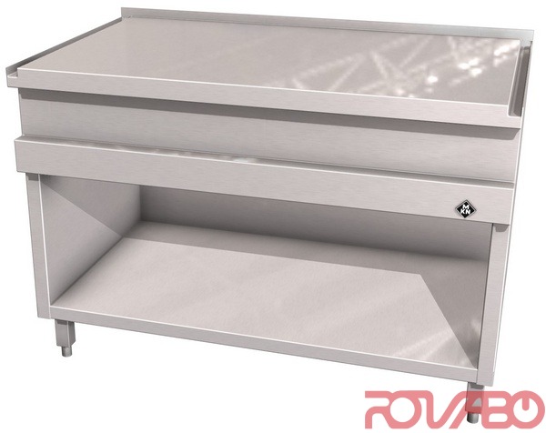 Housing made completely of chrome nickel steel (1.4301) / (AISI 304). Tightly welded top plate with lateral drain channel for easy cleaning. Optional accessories: appliance foot, 200 mm high, pluggable, +/– 15 mm height adjustable (4 feet). Upper and substructure with frame or box drawers (optional).