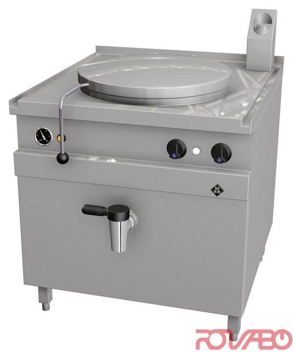 Inner kettle Ø500 mm, 378 mm deep made completely of extremely corrosion-resistant chrome nickel steel (1.4404) (AISI 316). Heat up time 22 min. Innovative fan-forced gas burner technology for fast heating up times and low energy consumption (efficiency approx. 90%). Less emission due to an optimal mixture of combustion air with the gas. The appliances are independent of the primary pressure of the gas pipe. 8 cooking programmes and a gentle heat setting control as standard. Thermostatic or EcoControl electronic temperature regulation. Automatic process water monitoring and feed. Emptying via safety drain cock at the front. Double-walled hinged lid and mixer tap as standard. DN 20 (¾") gas connection required. Main switch, interference button, thermostat, safety temperature thermostat, control lamps, gas regulating valve, water solenoid valve, water level regulator with electrode, pressure regulator, mains connection, IpX5. Fittings: fan-forced gas burner, digital automatic firing device with high voltage ignition and flame monitor, air valve and safety valve. Natural 20; 25 mbar or liquid gas 30; 37; 50 mbar. Heat emission sensitive: 1500 W, latent: 4500 W. Accessories: extra large drain cock 1½" made of chrome nickel steel, 1 drain filter, 1 Mixer tap with outlet R¾" (DN 20). Optional accessories: 2 Chrome nickel steel cooking inserts, perforation Ø10 mm, 1 pair of lifting hooks, 1 Measuring rod, appliance foot, 200 mm high, pluggable +/– 15 mm height adjustable (4 feet).