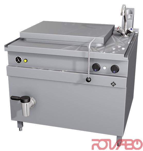 Inner kettle made completely of extremely corrosion-resistant chrome nickel steel (1.4404) (AISI 316). Inner kettle: 700x540 mm, 535 mm deep for 4xGN 1/1 – 200 mm deep. Heat up time 34 min. DN 20 (¾") gas connection required. Main switch, interference button, thermostat, safety temperature thermostat, control lamps, gas regulating valve, water solenoid valve, water level regulator with electrode, pressure regulator, mains connection, IpX5. Fan-forced gas burner, digital automatic firing device with high voltage ignition and flame monitor, air valve and safety valve. Nominal thermal load: natural 20; 25 mbar or liquid gas 30; 37; 50 mbar. Innovative fan-forced gas burner technology for fast heating up times and low energy consumption (efficiency approx. 90 %). Less emission due to an optimal mixture of combustion air with the gas. The appliances are independent of the primary pressure of the gas pipe. 8 cooking programmes and a gentle heat setting control as standard. Thermostatic or EcoControl electronic temperature regulation. Automatic process water monitoring and feed. Emptying via safety drain cock at the front. Double-walled hinged lid and mixer tap as standard. Accessories: extra large drain cock 2" made of chrome nickel steel, 1 drain filter, 1 Mixer tap with outlet R¾" (DN 20). Optional accessories: automatic lifting device for e.g. 12x1/1 GN - 65 mm deep, 1 Cooking insert, 1/1 GN, perforated, 190 mm deep (4 are required), 1 perforated shelf insert, 1 Measuring rod, appliance foot, 200 mm high, pluggable +/– 15 mm height adjustable (4 feet).