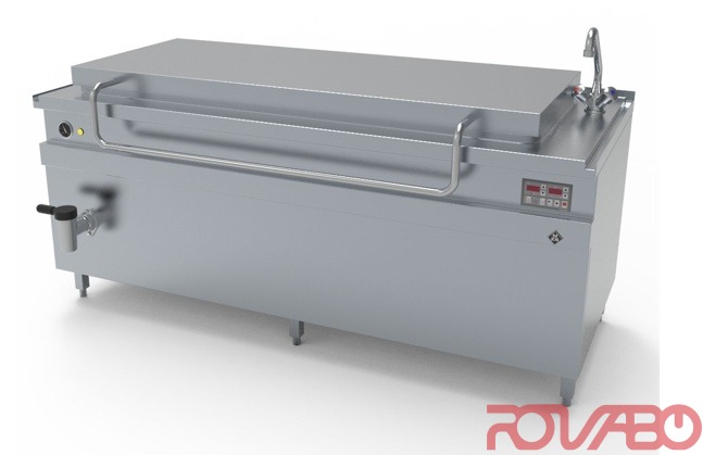Inner kettle made completely of extremely corrosion-resistant chrome nickel steel (1.4404) (AISI 316). Inner kettle: 1690x665 mm, 465 mm deep, for 12xGN 1/1 – 200 mm deep. Heat up time 53 min. Main switch, power control switch, thermostat, safety temperature thermostat, control lamps, tubular heating elements, pilot heating elements, contactor, water solenoid valve, water level regulator with electrode, mains connection, IpX5. Air valve, safety valve. Double jacketed kettle with separate, integrated and maintenance-free VAPRO steam generator for short heating up times and low energy and water consumption as well as highly efficient. Short heating up times with VAPRO pressure steam system. 3 cooking programmes as standard (light simmering, medium boiling and strong boiling). With EcoControl electronic temperature regulation and membrane keypad. Automatic process water monitoring and feed – is constantly ready for use. Double-walled hinged lid and mixer tap as standard. Emptying via safety drain cook at the front. Equipped as standard with interface for connection to an energy optimization system according to DIN 18875 and potential free contact. Accessories: extra large drain cock 2" made of chrome nickel steel, 1 drain filter, 1 Mixer tap with outlet R¾" (DN 20). Optional accessories: 1 Cooking insert, 1/1 GN, perforated, 190 mm deep (2 are required), 1 Measuring rod, appliance foot, 200 mm high, pluggable +/– 15 mm height adjustable (4 feet).