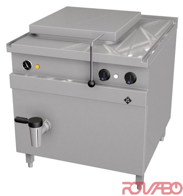 Inner kettle made completely of extremely corrosion-resistant chrome nickel steel (1.4404) (AISI 316). Inner kettle: 500x540 mm, 535 mm deep for 2xGN 1/1 – 200 mm deep. Heat up time 33 min. Main switch, power control switch, thermostat, safety temperature thermostat, control lamps, tubular heating elements, pilot heating elements, contactor, water solenoid valve, water level regulator with electrode, mains connection, IpX5. Air valve, safety valve. Double jacketed kettle with separate, integrated and maintenance-free VAPRO steam generator for short heating up times and low energy and water consumption as well as highly efficient. Short heating up times with VAPRO pressure steam system. 3 cooking programmes as standard (light simmering, medium boiling and strong boiling). Thermostatic or electronic temperature regulation. Automatic process water monitoring and feed – is constantly ready for use. Double-walled hinged lid and mixer tap as standard. Emptying via safety drain cook at the front. Equipped as standard with interface for connection to an energy optimization system according to DIN 18875 and potential free contact. Accessories: extra large drain cock 2" made of chrome nickel steel, 1 drain filter, 1 Mixer tap with outlet R¾" (DN 20). Optional accessories: automatic lifting device for e.g. 6x1/1 GN - 65 mm deep, 1 Cooking insert, 1/1 GN, perforated, 190 mm deep (2 are required), 1 perforated shelf insert, 1 Measuring rod, appliance foot, 200 mm high, pluggable +/– 15 mm height adjustable (4 feet).