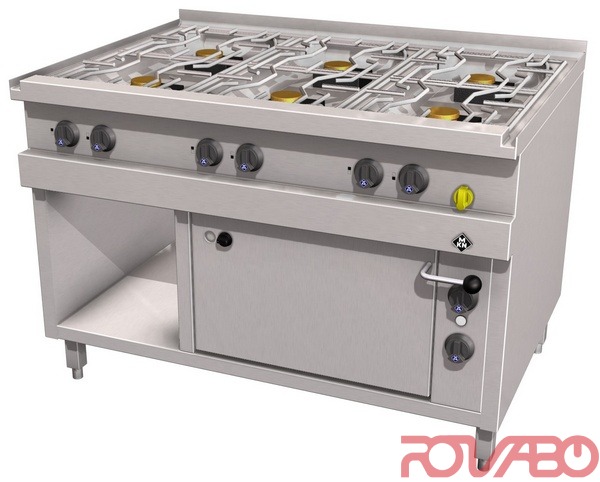 - Gas range, 3х3.5+5.6+2х7.0 kW, with electric oven 2/1 GN